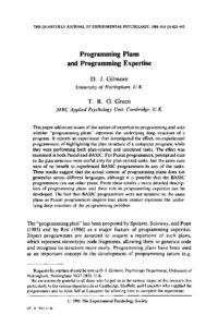 This paper addresses issues of the nature of expertise in programming and asks whether “programming plans” represent the underlying deep structure of a program. It reports an experiment that investigated the effect, on experienced programmers, of highlighting the plan structure of a computer program, while they were performing both plan-related and unrelated tasks. The effect was examined in both Pascal and BASIC. For Pascal programmers, perceptual cues to the plan structure were useful only for plan-related tasks, but the same cues were of no benefit to experienced BASIC programmers in any of the tasks. These results suggest that the actual content of programming plans does not generalise across different languages, although it is possible that the BASIC programmers can use other plans. From these results a more detailed description of programming plans and their role in programming expertise can be developed. The fact that BASIC programmers were not sensitive to the same plans as Pascal programmers implies that plans cannot represent the underlying deep structure of the programming problem.